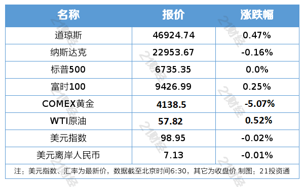 1、美股三大指数收盘涨跌不一,其中道指收涨0.47%,再创历史新高,标普500指数平收,纳指跌0.16%。费城金银指数大跌9.57%。热门中概股多数下跌,纳斯达克中国金龙指数收跌0.97%。欧洲主要股指收盘普涨,德国DAX30指数涨0.37%。